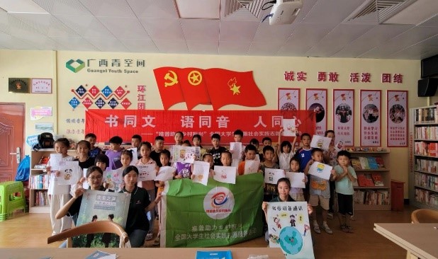 为进一步加强国家通用语言文字推广力度,助力乡村振兴,数学与信息科学学院“语通乡韵”推普助乡村振兴团,于7月18日前往广西环江毛南族自治县毛南家园城北安置区的“广西青空间”,开展语言文化推广与传承活动,多举措为普及国家通用语言文字贡献一份力量。这次活动为当地孩子们搭建了一个学习普通话、展现自我风采的舞台,也为乡村振兴注入了新鲜的文化活力。