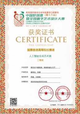 在这两大赛事中,数信学院的学子们充分展现了他们对艺术的热爱与对技术的追求,特别是在人工智能生成艺术类(AIGC)及国潮非遗设计类等前沿与创新赛道上,他们凭借独特的创意和精湛的技能,赢得了评委们的高度认可。