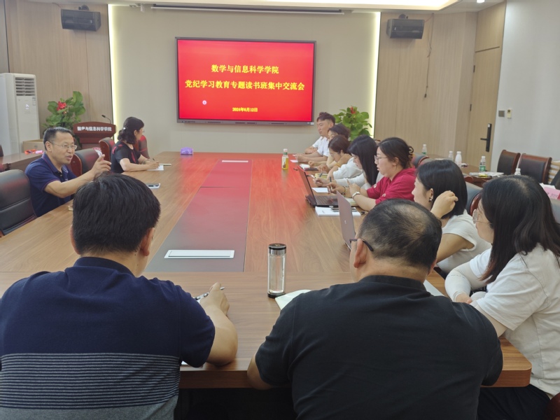 为扎实开展党纪学习教育,6月12日,数学与信息科学学院党总支在学院会议室召开党纪学习教育读书班集中交流会暨2024年第六次党总支理论学习中心组(扩大)会议。党总支理论学习中心组成员、学院副处级以上领导干部、各党支部书记参加了本次学习会。会议由党总支书记李贵希主持。