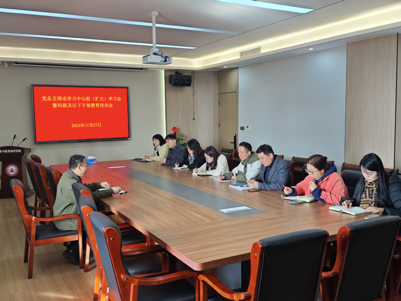 为深入学习习近平总书记在党的二十届三中全会上的重要讲话精神,深刻领会和把握进一步全面深化改革的主题、重大原则、重大举措、根本保证,深刻领悟“两个确立”的决定性意义,增强“四个 意识”、坚定“四个自信”、做到“两个维护”,11月27日,数学与信息科学学院召开2024年第十次党总支理论学习中心组(扩大)学习会暨科级及以下干部教育培训会,通过视频集体学习“深入学习贯彻习近平总书记关于全面深化改革的一系列新思想、新观点、新论断和党的二十届三中全会精神”,学院党总支理论学习中心组成员、学院副处级以上领导干部、科级及以下干部参加了本次学习会。会议由党总支书记李贵希主持。