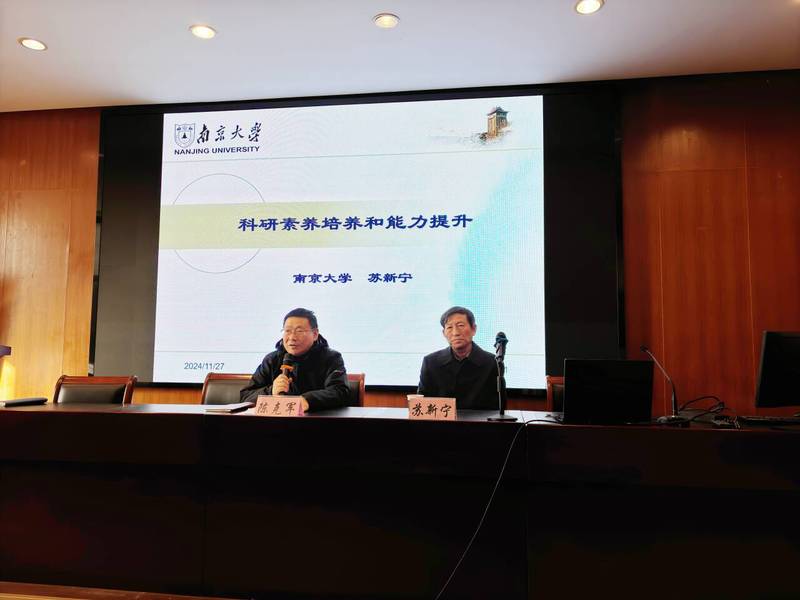 为进一步提升教师的科研素养和能力,促进学科发展,数学与信息科学学院与科研处于11月27日联合主办了专题讲座“科研素养培养与能力提升”,特邀教育部长江学者、南京大学苏新宁教授作为主讲嘉宾。讲座由校党委常委、副校长、数学学科带头人陈克军教授主持。数学与信息科学学院全体教师、学校年轻教师以及高年级本科生参加了讲座。