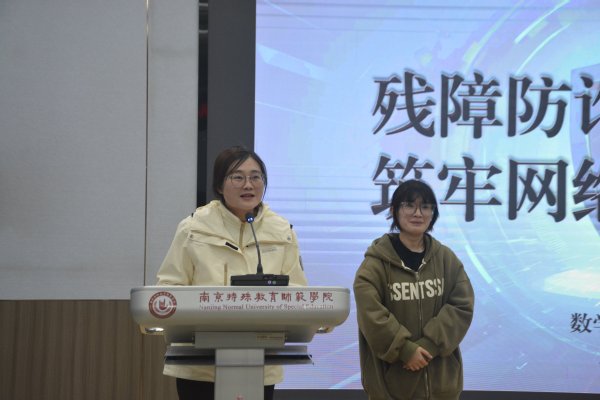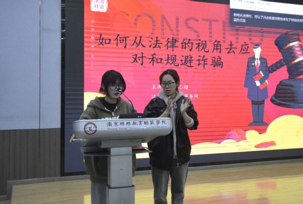 为增强听障学生对法律知识的了解,增强其“防骗、识骗、拒骗”的意识和能力,2024年12月5日,数学与信息科学学院在博远楼106举办了以“法融爱——筑牢网络安全防护堤”为主题的反诈讲座。本次讲座特邀江苏维哲律师事务所庄志超律师主讲,计科2203L班聋生林慧琳主持,学院党总支副书记丁雯、全体辅导员和聋生参与。