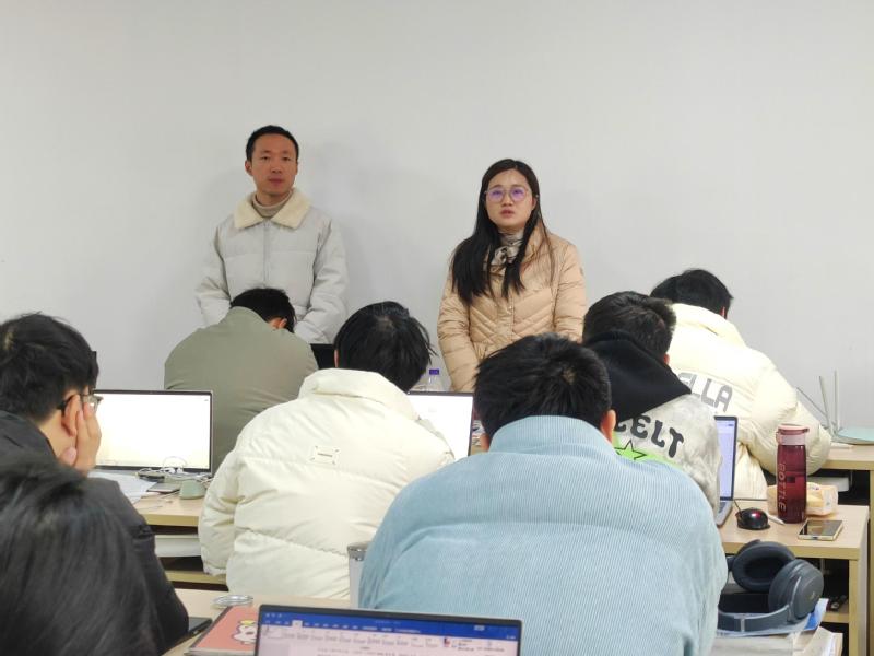 寒冬岁末,2025年研究生考试初试在即。为进一步激励考研学生的备考信心,鼓舞考研士气,缓解考前压力。12月19日上午,数学与信息科学学院党总支副书记丁雯、毕业班辅导员张国盛走访江苏软件园,深入了解正在南京矽鼎信息科技有限公司进行集中实习同学们的考研进度和学习生活情况,并送上寓意吉祥、心意满满的数信院专属“暖心考研大礼包”。