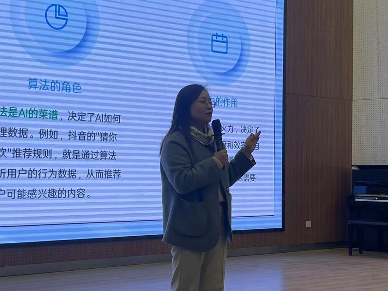 据了解,南京师范大学附属中学燕子矶新城学校(初中部)语文备课组在教学研究中发现,近年来教学中频繁出现与人工智能相关的内容,例如AI写作、人机对话等。然而,许多初三学生对人工智能和AI的概念还比较陌生。针对这一情况,吴菲副教授精心准备了此次讲座。她用通俗易懂的语言、生动形象的案例,向学生们介绍了人工智能的定义、发展历程、应用领域以及未来趋势等内容。吴菲副教授还结合语文学习,讲解了AI写作、机器翻译等技术的原理和应用,并引导学生思考人工智能对人类社会的影响。