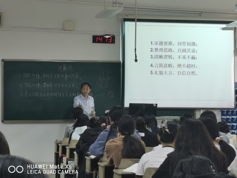 讲座中,结合大家的现场提问,刘耀斌教授与广大师生进行了热烈的互动交流。本次活动为即将参加教师资格证面试考试的学生提供了全面有效的指导,提升了同学们对教资考试的认知和策略把握能力,有助于他们深化职业认识、培养职业能力,为以后求职就业打下良好基础。(图/冯钰嵘 郑新洁 文/刘琪琪 审核/李贵希)