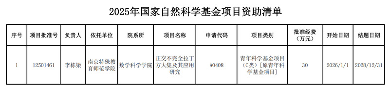 近日,国家自然科学基金委员会发布了《关于2025年国家自然科学基金集中接收申请项目评审结果的通告》,我校AV中文字幕在线观看李栋梁老师申报的项目获得青年科学基金项目(C类)资助,资助经费30万元。
